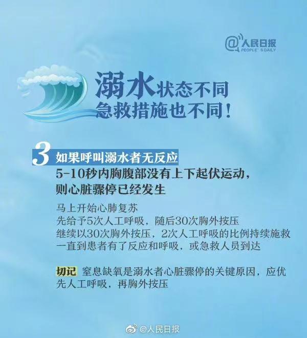 “多虧了前期及時(shí)有效的心肺復(fù)蘇,降低了因心跳停搏所導(dǎo)致的器官功能損害,提高搶救成功率,減少患兒后遺癥的發(fā)生,我們后續(xù)搶救才有了保障。”海南省人民醫(yī)院兒科副主任陳玉雯表示,發(fā)生溺水后1~2分鐘內(nèi)得到正確且迅速地?fù)尵龋瑩尵瘸晒β室话憧梢赃_(dá)到90%以上。如果超過10分鐘,甚至更長時(shí)間,都沒能正確搶救,則腦死亡率較高,多數(shù)人都無法搶救回來。