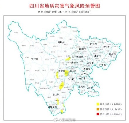 日前,從四川省自然資源廳獲悉,根據(jù)四川省地質(zhì)環(huán)境條件,結(jié)合四川省氣象臺天氣預(yù)報(bào)情況,8月12日20時(shí)至8月13日20時(shí),四川省地質(zhì)災(zāi)害指揮部辦公室發(fā)布全省地質(zhì)災(zāi)害氣象風(fēng)險(xiǎn)3級黃色預(yù)警。此次預(yù)警區(qū)域?yàn)椋貉虐灿瓿菂^(qū)、石棉縣,眉山洪雅縣,阿壩州汶川縣,甘孜州瀘定縣,涼山州會理市、德昌縣、會東縣、寧南縣、喜德縣、越西縣、甘洛縣等5市(州)12個(gè)縣(市、區(qū))。(成都日報(bào)錦觀新聞)
