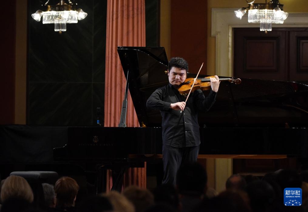 8月10日,在奧地利維也納,演奏者表演提琴獨奏《聲情》。新華社記者 賀燦鈴 攝
