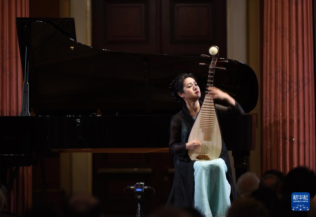 8月10日,在奧地利維也納,演奏者表演琵琶獨奏《琵琶辭》。