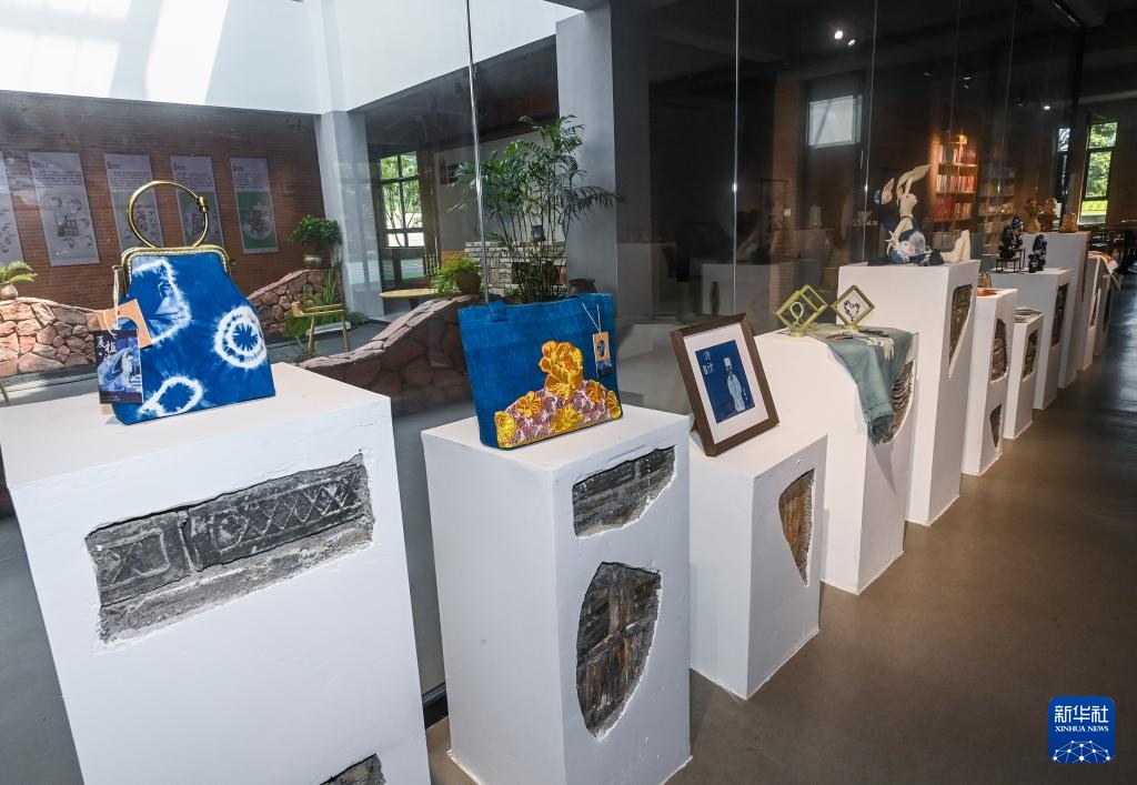 8月11日拍攝的葛家村藝術創富學院展示的各類鄉村特色手工藝品。
