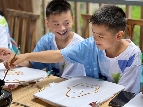 跟孩子們聊起這場天文科普夏令營,大家津津樂道的也大都是“非天文”的內容。高一女生鄒雨晴喜歡在布依族村寨里體驗蠟染,在布上繪好圖案,倒上融化的蠟,再放進染缸,親手做出一塊蠟染的布。