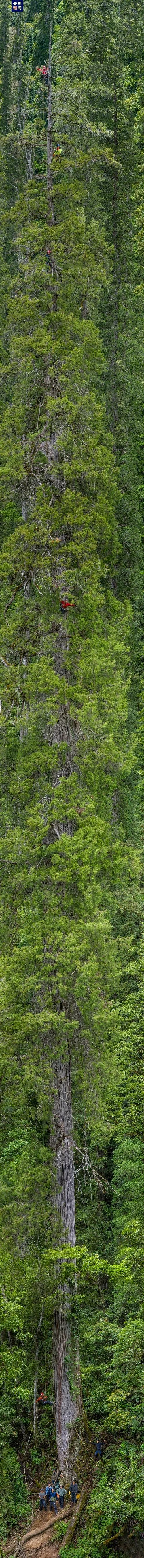 這里有一個插曲,由于樹是長在斜坡上,因此還要確定樹干基部露出地面的最高點和最低點,最終,科學家得出藏南柏木Ⅱ號高度為99.5米。