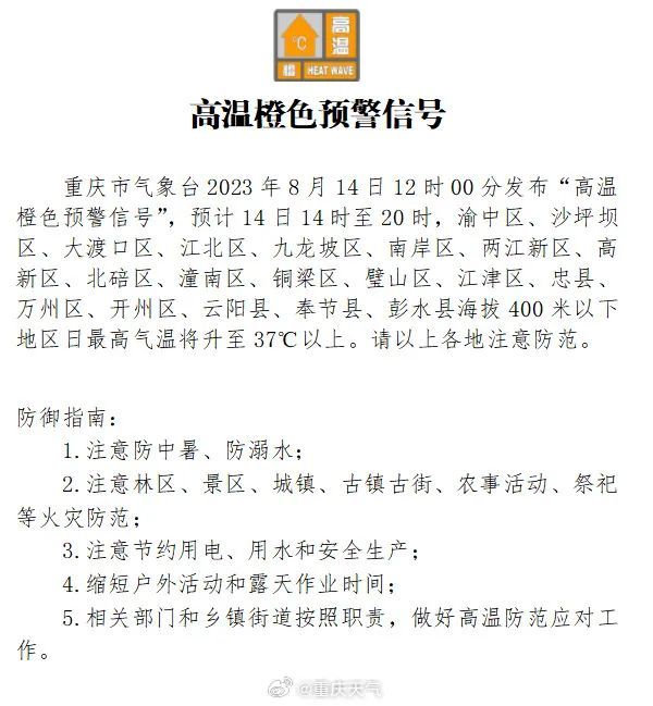 據天氣預報,14日08時—15日08時,重慶局部地區有陣雨或雷雨,受低能見度天氣影響路段如下: