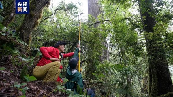 如此循環(huán)往復(fù),鄭達(dá)雄抵達(dá)后來被定名為藏南柏木Ⅱ號的95米高處,相當(dāng)于30層樓高。不需要再往上爬了,已經(jīng)可以為巨樹量身高了。
