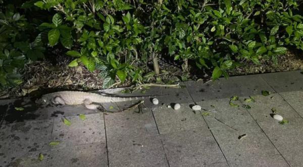 近日,佛山一小區驚現一只大蜥蜴,路邊還有4顆蜥蜴蛋。經初步判定,該蜥蜴為國家一級重點保護野生動物水巨蜥。