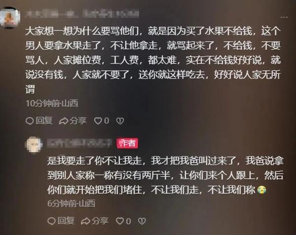稱罵人是因為女孩爸爸要拿走水果不給錢