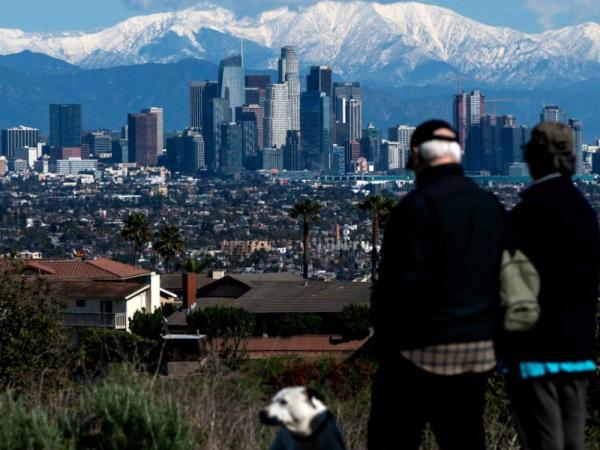 2019年2月6日,在美國洛杉磯,人們遠眺市中心建筑。新華社發(錢衛忠攝)