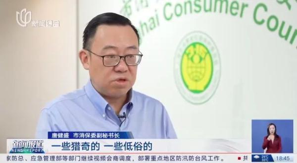 唐健盛市消保委副秘書長:語不驚人死不休的、一些獵奇的,一些低俗的,像這么一些宣傳、這么一些包裝,無論對消費者還是對社會的公序良俗,都是非常不好的事。