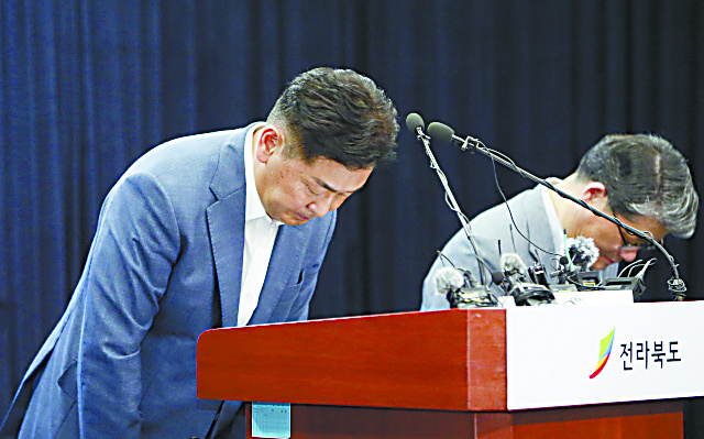 13日下午,新萬金世界童軍大露營組織委員會共同委員長、執(zhí)政黨議員金潤德舉行記者會,就活動失敗道歉。據(jù)《韓國經(jīng)濟(jì)》報道,該組委會執(zhí)行委員長、全羅北道知事金寬永14日首次公開表態(tài)并道歉。他表示,作為大會的舉辦地感到負(fù)有責(zé)任,向受到傷害的韓國國民道歉,并將配合查明真相。但對于執(zhí)政黨主張“全羅北道責(zé)任論”,金寬永不贊成。他表示:“如果全羅北道在所負(fù)責(zé)的事情上出現(xiàn)問題,全羅北道將承擔(dān)責(zé)任;如果組委會出現(xiàn)問題,組委會負(fù)責(zé)人應(yīng)該承擔(dān)責(zé)任?!?/p>