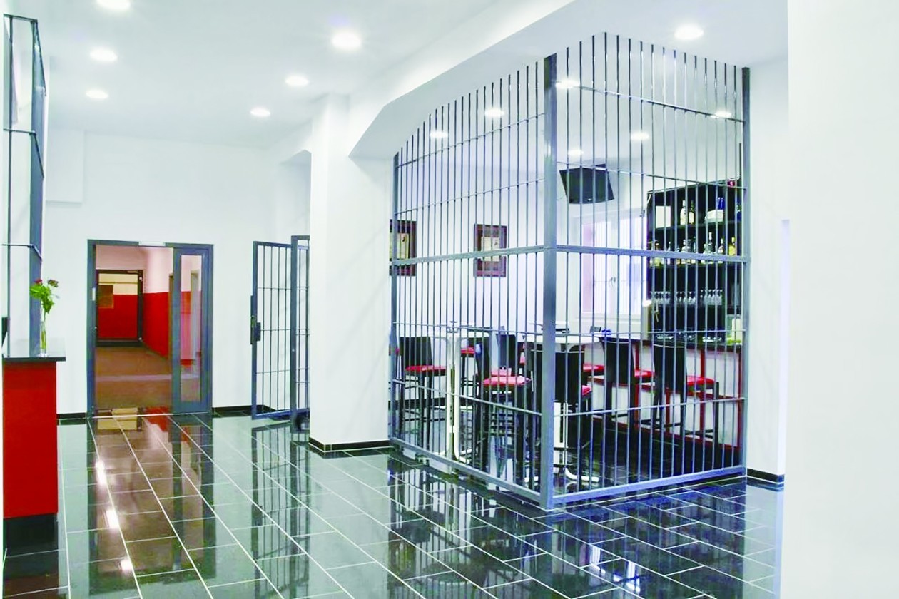 酒店內也處處散發著監獄的氛圍,辦理入住手續的地方是以前的警衛室,仍裝著鐵柵欄。酒店許多客房配有鐵窗,小酒吧也被鐵柵欄圍繞著。