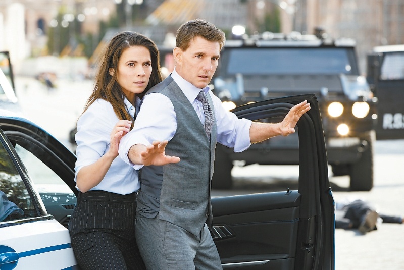 意大利文化學(xué)者艾科對詹姆斯·邦德故事所做的結(jié)構(gòu)分析,同樣適用于碟中諜系列:英雄、老板、壞人、女人。碟中諜系列前幾部,女性無論是作為朋友還是敵人,存在感都不強,裝飾性遠大于實際功能。可能是為了增加親民性,也試圖開放阿湯哥拯救世界任務(wù)的人類參與門檻,本片引入了姿色尚可、略有拳腳、偷竊手法專業(yè)細膩的女飛賊共襄盛舉。上一集的神槍手美女半場悲慘出局,神偷手美女接手顏值擔(dān)當(dāng)。為了加強女性存在的戲劇效果,新美女被設(shè)計成為阿湯哥重要的行動助手,甚至成為推進情節(jié)進展的關(guān)鍵節(jié)點之一。