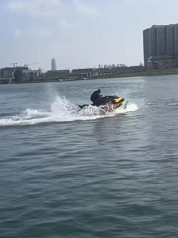 16時(shí)46分許,王某1從北碼頭下水,由于雙方距離較近,王某2轉(zhuǎn)圈時(shí)摩托艇激起的波浪濺濕王某1的衣衫(此即網(wǎng)傳的“第一次撞擊”)。