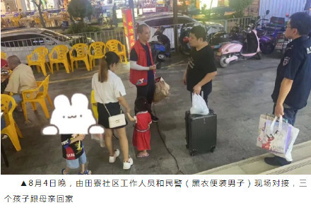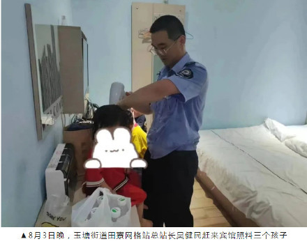 民警和社區網格員立即趕來,經大伙兒協商,賓館老板愿意收留三個孩子先免費入住。網格員們則帶來食物和干凈衣物,喂孩子們吃飯還幫他們洗了澡,并留人在賓館專程看護。直至8月4日傍晚,網格員、民警經細致摸排,終于聯系上了那名年輕男子,也是三名孩子的父親代某。