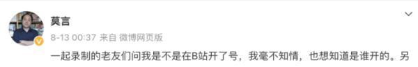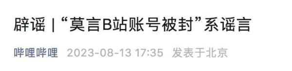 “莫言B站賬號被封”系謠言 B站是對冒名注冊莫言的賬號進行永封處理