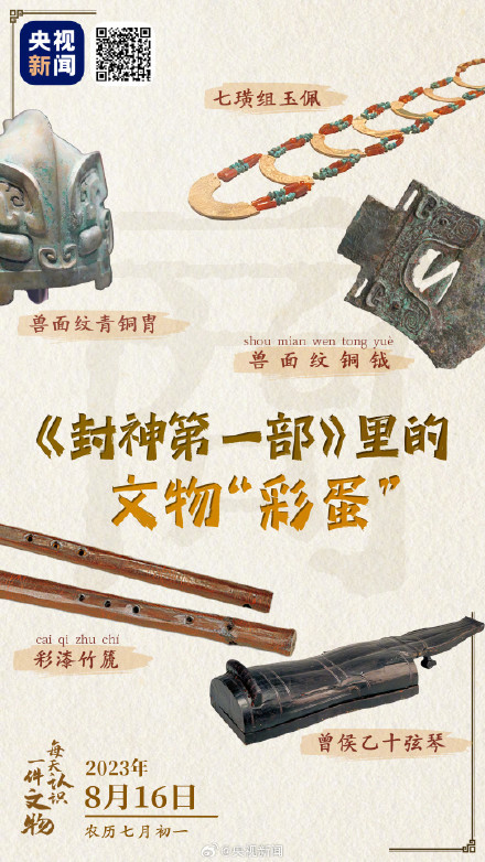 正在熱映的電影《封神第一部》中:伯邑考吹奏的樂器是篪,曾侯乙墓中就曾出土彩漆竹篪;“質子團”的頭盔,取材于獸面紋青銅胄;商王殷壽手持酷似“斧頭”的物件為“鉞”,是兵器,也與王權緊密相連;妲己、姜王后佩戴的項鏈為“組玉佩”,高度還原了博物館中的款式;還有算卦的卜甲,隨處可見的商代青銅器經典紋飾。