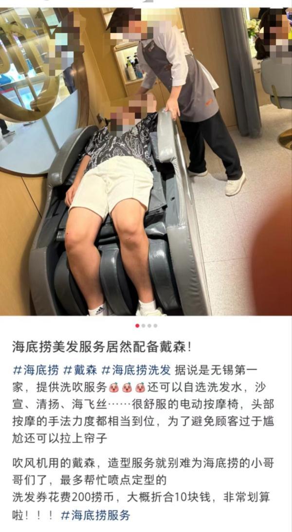 在小紅書等平臺(tái),體驗(yàn)過該項(xiàng)洗頭服務(wù)的網(wǎng)友表示,“吹風(fēng)機(jī)都是戴森的,還可以自選洗發(fā)水,采用了很舒服的電動(dòng)按摩椅,頭部的按摩手法相當(dāng)?shù)轿弧!?/p>