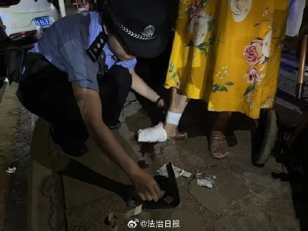 原來,8月11日晚上10時許,“鄉愁貴州”燈光秀門口有一名女子,急匆匆地向濱湖派出所現場執勤警力求助,稱其母親被一鐵銹樁子劃傷,腳在不停流血,濱湖派出所現場執勤警力聽聞后,一位女民警立即帶上隨身攜帶的急救包跑到其母親受傷地點進行救助。