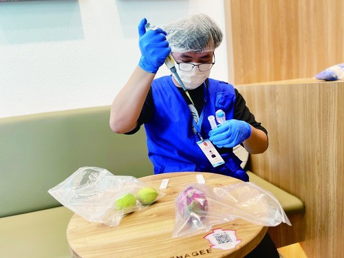 第三方檢測(cè)機(jī)構(gòu)在兩家飲品店隨機(jī)抽取香水檸檬、火龍果、西瓜,現(xiàn)場(chǎng)快速檢測(cè)農(nóng)藥殘留等是否超標(biāo),檢測(cè)結(jié)果均為合格。