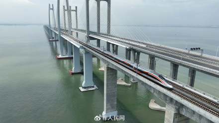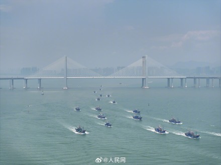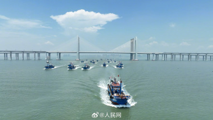 為期3個半月的伏季休漁期于8月16日12時結(jié)束,在福廈高鐵泉州灣跨海大橋附近海域,漁船馬達(dá)轟鳴,漁民們正在開啟新一輪出海作業(yè)。出海漁船與駛來的高鐵不期而遇,感受當(dāng)高鐵遇上開漁季有多壯觀!(人民網(wǎng))