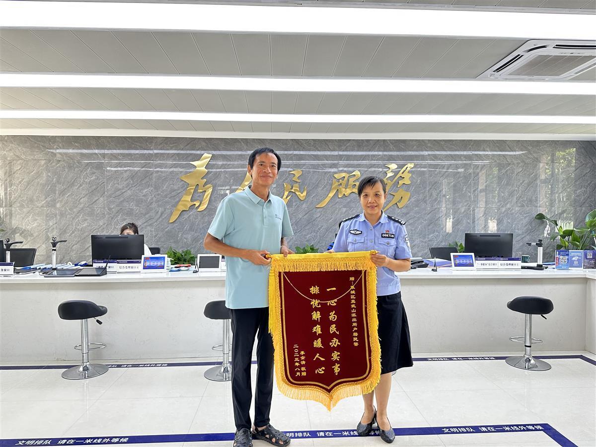 8月14日下午,湖北襄陽市公安局襄城公安分局真武山派出所戶籍室,轄區居民李先生送來一面寫有“一心為民辦實事,排憂解難暖人心”的錦旗,感謝戶籍民警熱心為民,為其解憂。