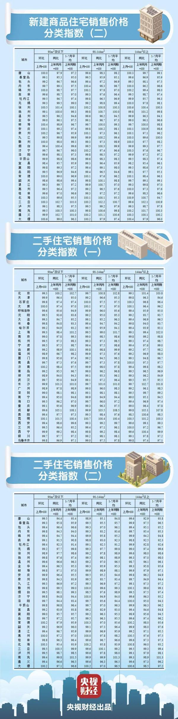 今天(16日),國家統計局發布了7月份70個大中城市商品住宅銷售價格變動情況。