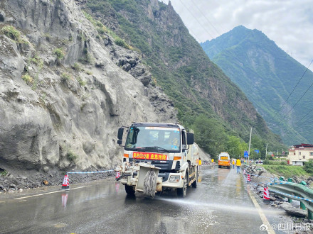 8月16日,經過21天全力搶險施工,國道317線理縣境內K183+300山體垮塌處恢復雙向通行。7月15日,該路段發生山體垮塌后實施臨時交通管制,過往車輛經汶馬高速繞行。(劉建美記者 杜杰)