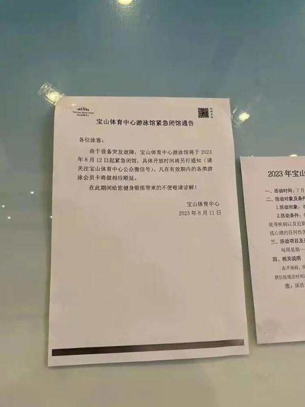 截至發稿,記者尚未收到寶山區衛監局回應。不過,8月11日晚,鄭先生告訴記者,已收到寶山體育中心短信,稱:“由于設備突發故障,游泳館于8月12日起暫停開放,恢復日期另行通知,有效期內的會員卡將做相應順延。”