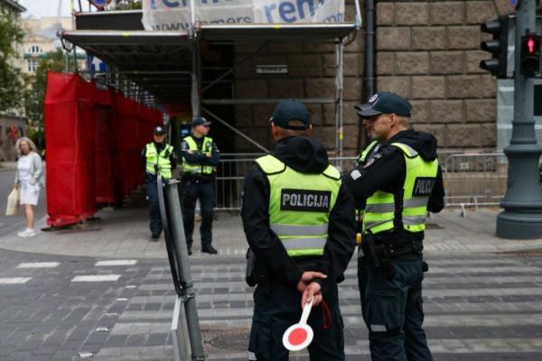 7月10日,警察在立陶宛維爾紐斯的街道上執(zhí)行任務。新華社記者鄭煥松攝