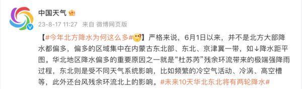 近日,華北多地遭遇暴雨侵襲,部分地區發生洪澇災害。未來十天,華北東北還將有兩輪降水,今年北方降水為何這么多[gf]feff[/gf]?
