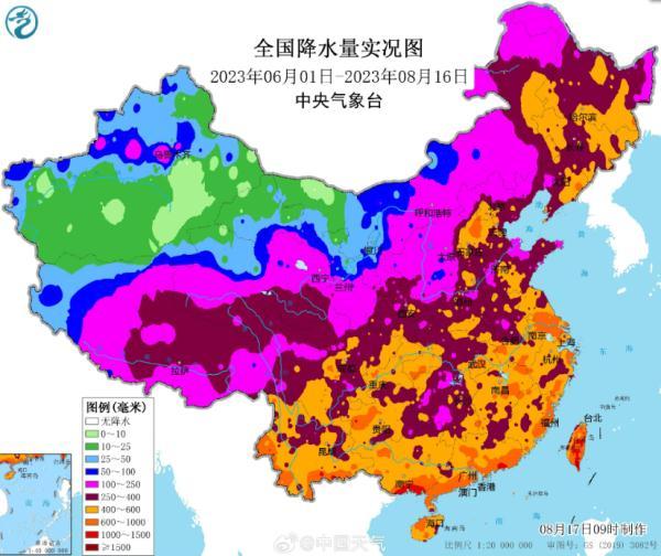 預計8月17日14時至18日14時,內蒙古中東部、黑龍江西南部、吉林西部、遼寧西部、山西中部、河北、北京、天津、山東北部、安徽南部等地的部分地區將有8-10級雷暴大風或冰雹天氣;內蒙古東部、黑龍江中西部、吉林西部、遼寧西部、山西中東部、河北、北京東部和西南部、天津、山東北部、河南北部、安徽東南部、江蘇中南部、上海、湖南南部、江西南部、浙江、福建、四川中部、重慶南部、貴州西部、云南、廣西、廣東中東部、臺灣島南部等地的部分地區將有短時強降水天氣,小時雨量30-50毫米,局地可達60毫米以上。