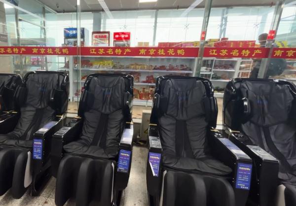 在南京火車站,記者實地探訪了四個候車室,發現每個候車室都或多或少擺放了共享按摩椅。