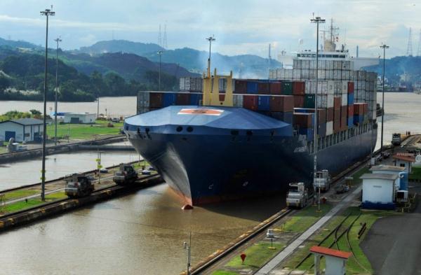 2010年10月5日,一艘智利籍集裝箱貨輪通過巴拿馬運河船閘。新華社發(莫妮卡·魯埃達攝)