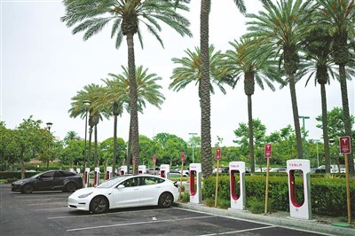 圖為近日在美國加利福尼亞州拍攝的特斯拉充電樁。新華社/美聯