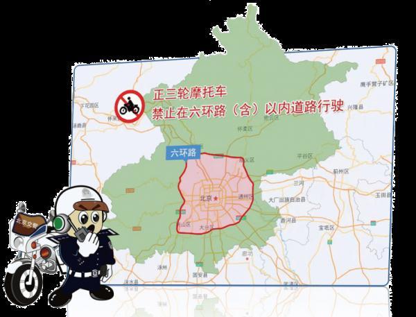 按北京市《關(guān)于加強三輪摩托車和殘疾人機動輪椅車管理的通告》的規(guī)定,正三輪摩托車禁止在六環(huán)路 (含) 以內(nèi)道路行駛。