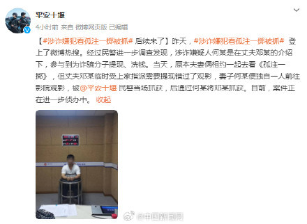 昨天,涉詐嫌犯看孤注一擲被抓引發網友關注。經過民警進一步調查發現,涉詐嫌疑人何某是在丈夫鄧某的介紹下,參與到為詐騙分子提現、洗錢。當天,原本夫妻倆相約一起去看《孤注一擲》,但丈夫鄧某臨時受上家指派需要提現錯過了觀影,妻子何某便獨自一人前往影院觀影,被平安十堰民警當場抓獲,后通過何某將鄧某抓獲。目前,案件正在進一步偵辦中。