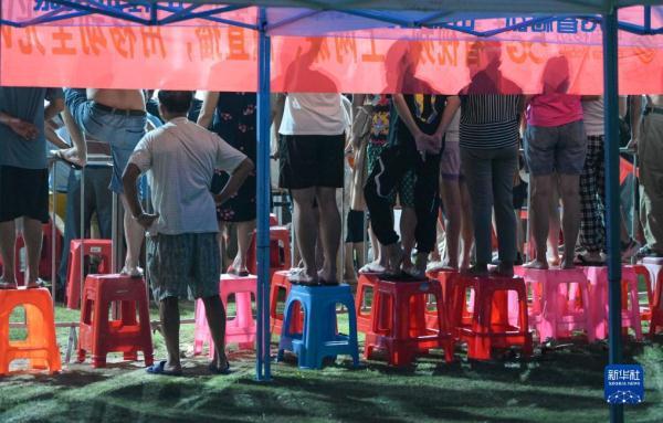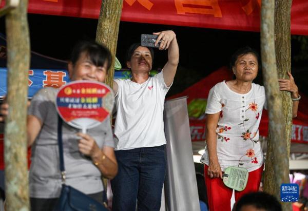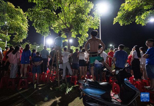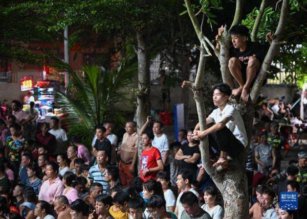 人們在海南省文昌市馮坡鎮觀看“村排”比賽(7月15日攝)。