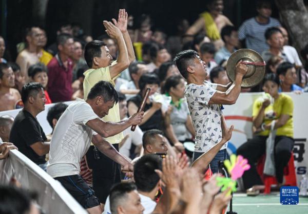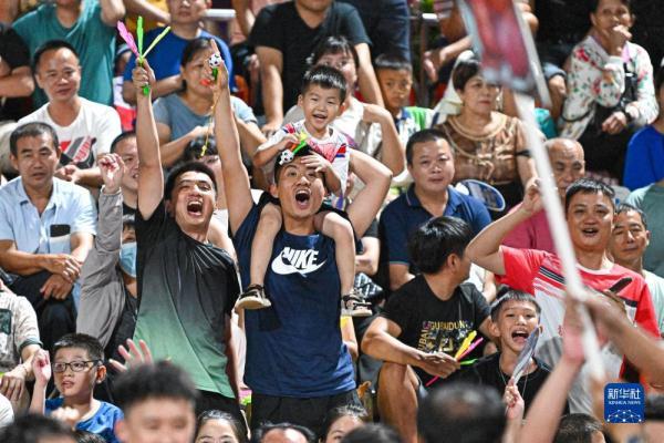 “村排”決賽現場,觀眾在場邊吶喊助威(8月13日攝)。