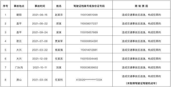 近期,北京市公安交管部門對在本市發生交通事故后逃逸構成犯罪的8名駕駛員,依法作出吊銷機動車駕駛證,且終生不得重新取得機動車駕駛證的處罰。