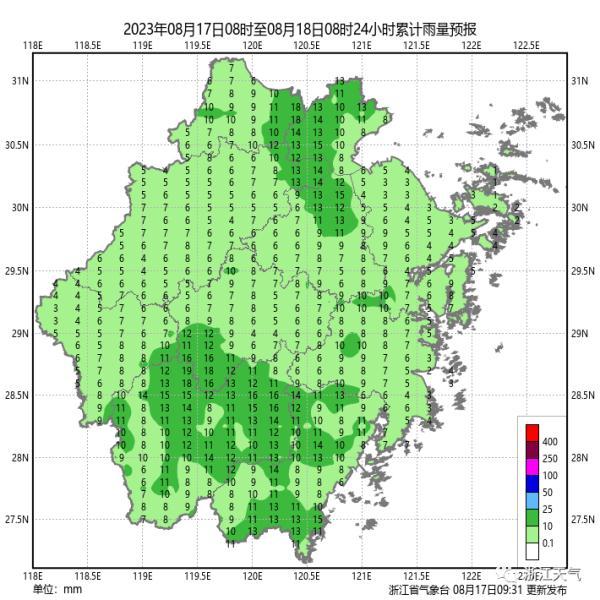 今天16時16分,浙江共發布143條預警信號,其中雷電預警62條,暴雨預警38條。