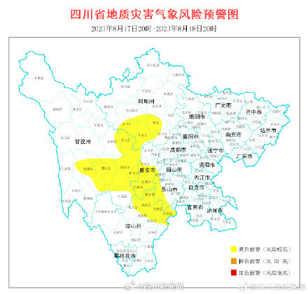 根據(jù)四川省氣象臺天氣預(yù)報(bào)情況,結(jié)合四川省地質(zhì)環(huán)境條件,8月17日20時(shí)到8月18日20時(shí),全省地質(zhì)災(zāi)害氣象風(fēng)險(xiǎn)預(yù)警結(jié)果如下: