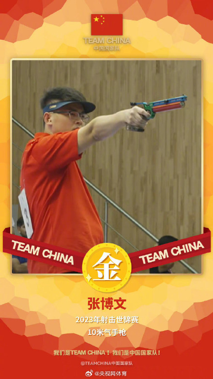 8月17日,2023年射擊世錦賽男子10米氣手槍決賽,張博文以領先第二名3.5環的優勢奪得冠軍,為中國隊拿到了這個項目的第二個奧運席位!