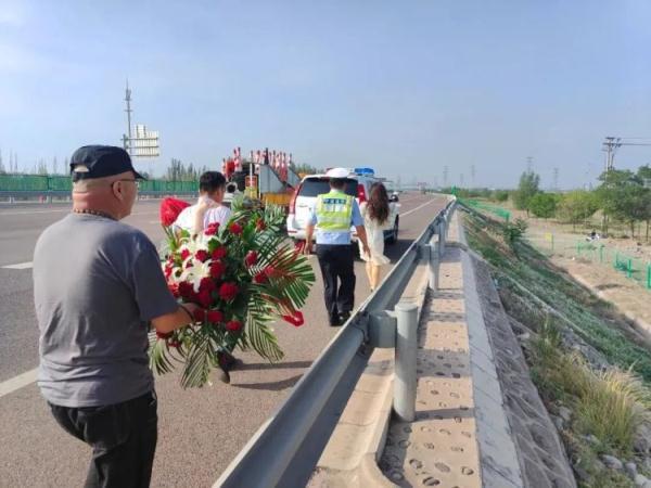 而此時正處于上班的高峰期,為了確保安全,民警及時做好防護措施,同時聯系其他警車。不到10分鐘,又有一輛警車趕來,交警讓新郎和新娘坐上警車,打開警笛,將他們送到平羅南出口,與等待在那里的其他車輛會合。最終,新郎和新娘在之前計劃好的9時30分,趕到吳忠,順利完成了結婚典禮。