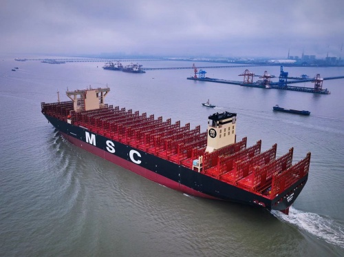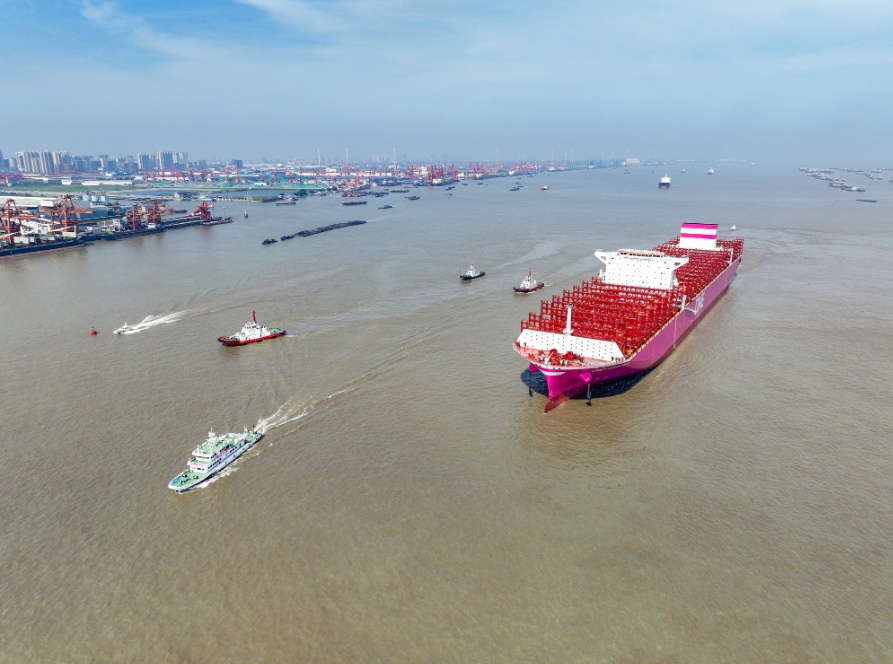 △圖為揚(yáng)子江船業(yè)生產(chǎn)的24000TEU集裝箱船。
