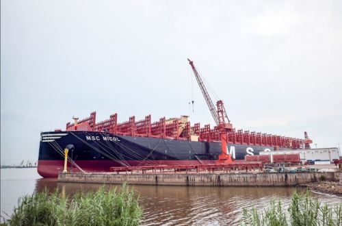 7月28日,江蘇新?lián)P子造船有限公司為SEASPAN公司建造的第四艘15000TEU集裝箱船順利命名交船,首航青島港。該船創(chuàng)造了姐妹船建造中的最短塢期85天和最短水下周期55天新紀(jì)錄。