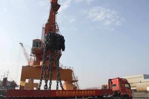 △圖為亞星錨鏈研發(fā)生產(chǎn)的世界首制R6系泊鏈發(fā)貨。