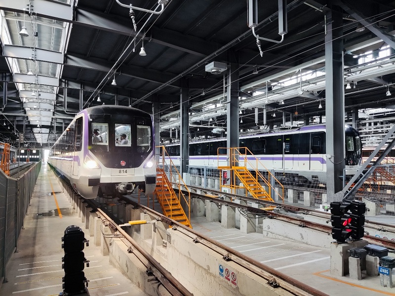 圖為停靠在中鐵建交通運營集團海教園車輛段的天津地鐵6號線二期全自動無人駕駛電客車。光明網記者 孔繁鑫/攝