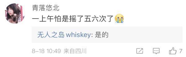 8月18日,四川內(nèi)江市連續(xù)發(fā)生多次地震。從9時30分到10時39分,內(nèi)江在70分鐘內(nèi)連震了3次。
