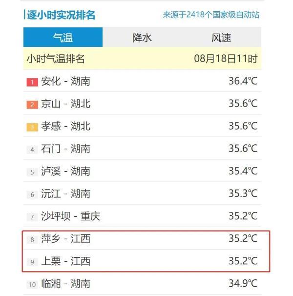 全國高溫前十榜