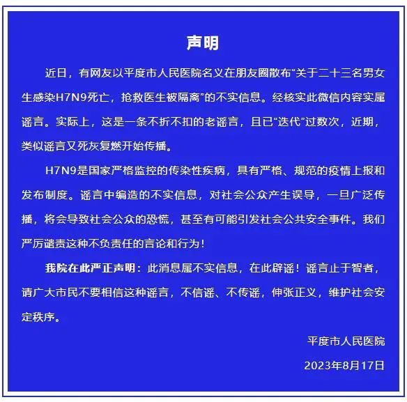 8月17日,“平安平度”微信公眾號發(fā)文辟謠,全文如下: